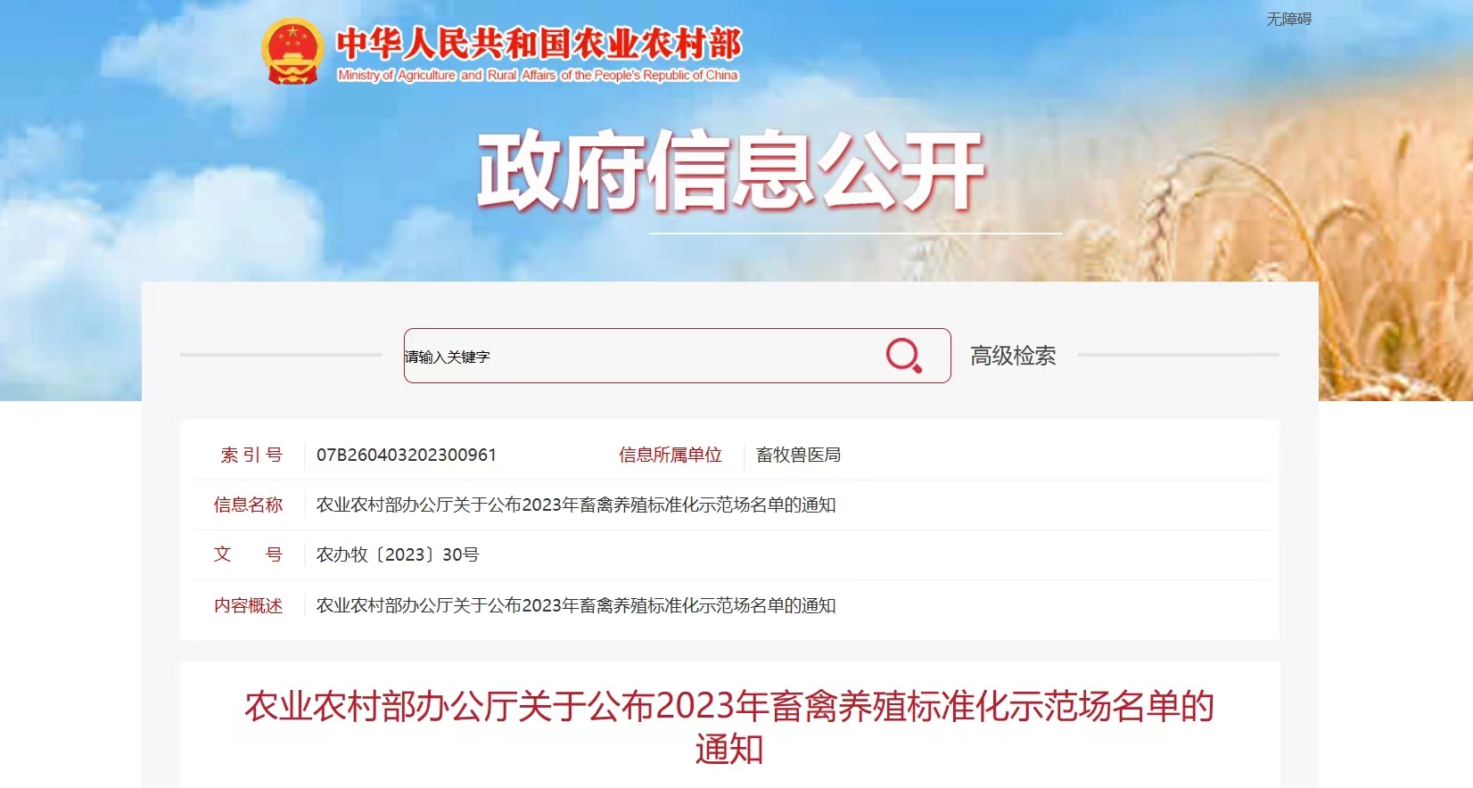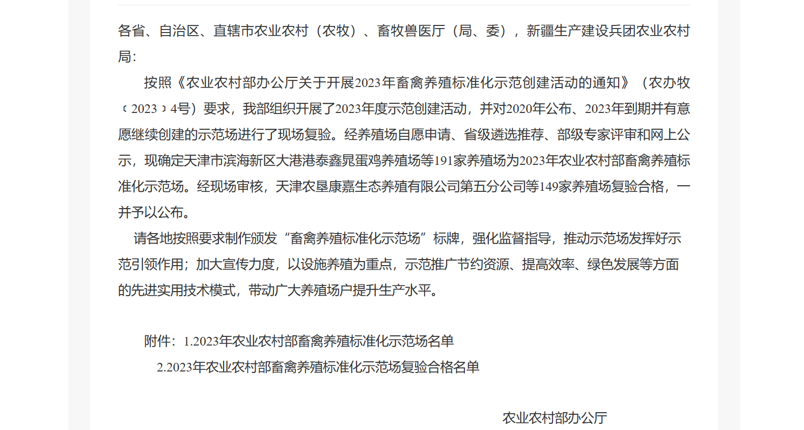 近日,農(nóng)業(yè)農(nóng)村部辦公廳公布了2023年全國191個畜禽養(yǎng)殖標(biāo)準(zhǔn)化示范場名單,鵬欣集團(tuán)旗下鵬睿農(nóng)牧中陳核心育種場正式獲批部級畜禽養(yǎng)殖標(biāo)準(zhǔn)化示范場。
