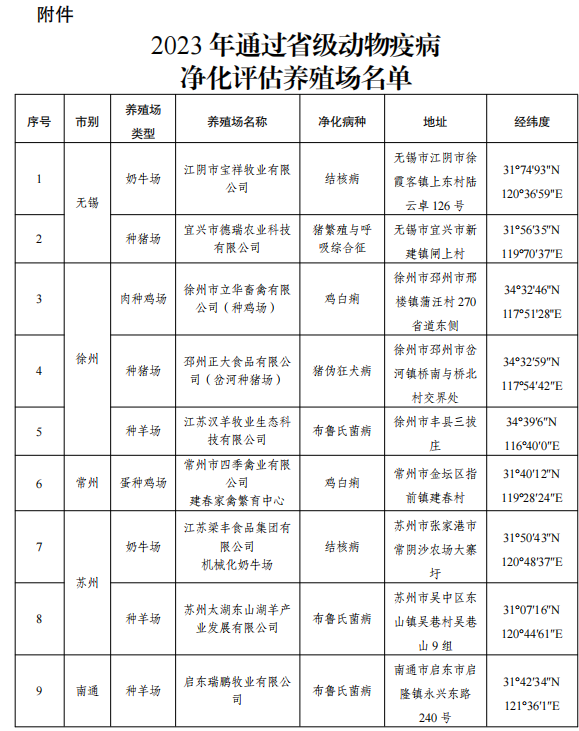 12月15日,江蘇省農(nóng)業(yè)農(nóng)村廳發(fā)布省級(jí)動(dòng)物疫病凈化場(chǎng)名單蘇農(nóng)便〔2023〕408 號(hào),我司瑞鵬牧業(yè)經(jīng)專家評(píng)審,被評(píng)為省級(jí)羊布魯氏菌病凈化場(chǎng)。